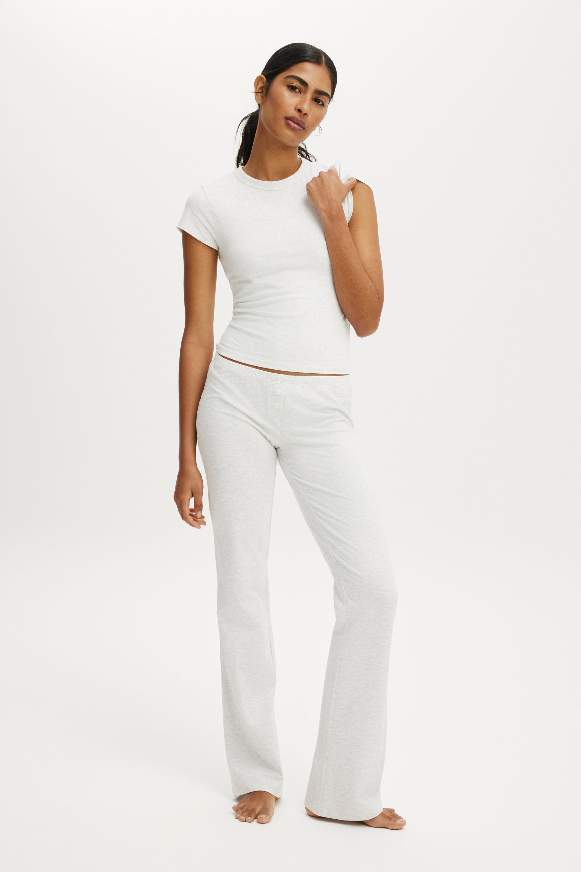 A dreamy, softly peached jersey fabric with added elastane for endless comfort