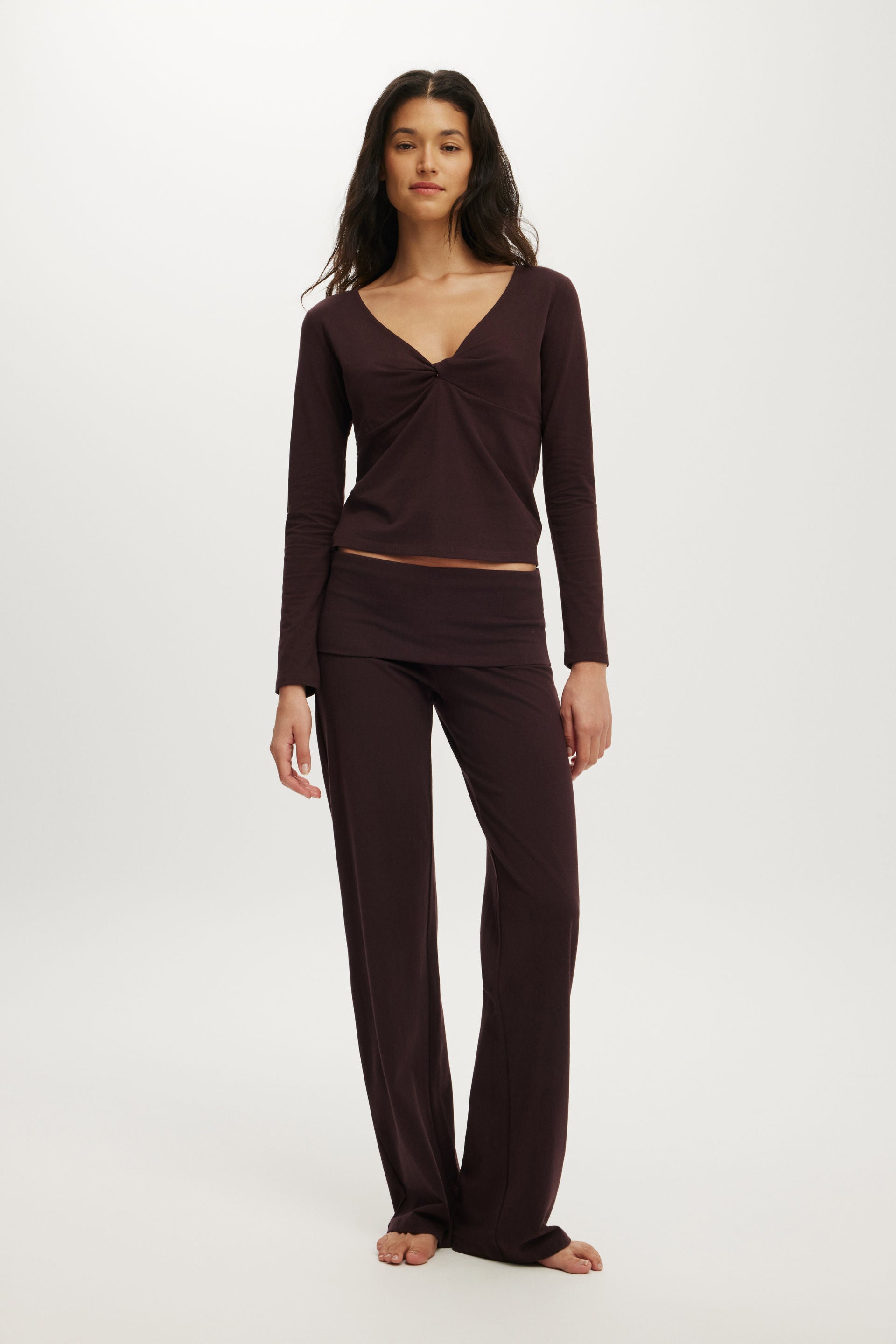 - Low plunge neckline with twist detail