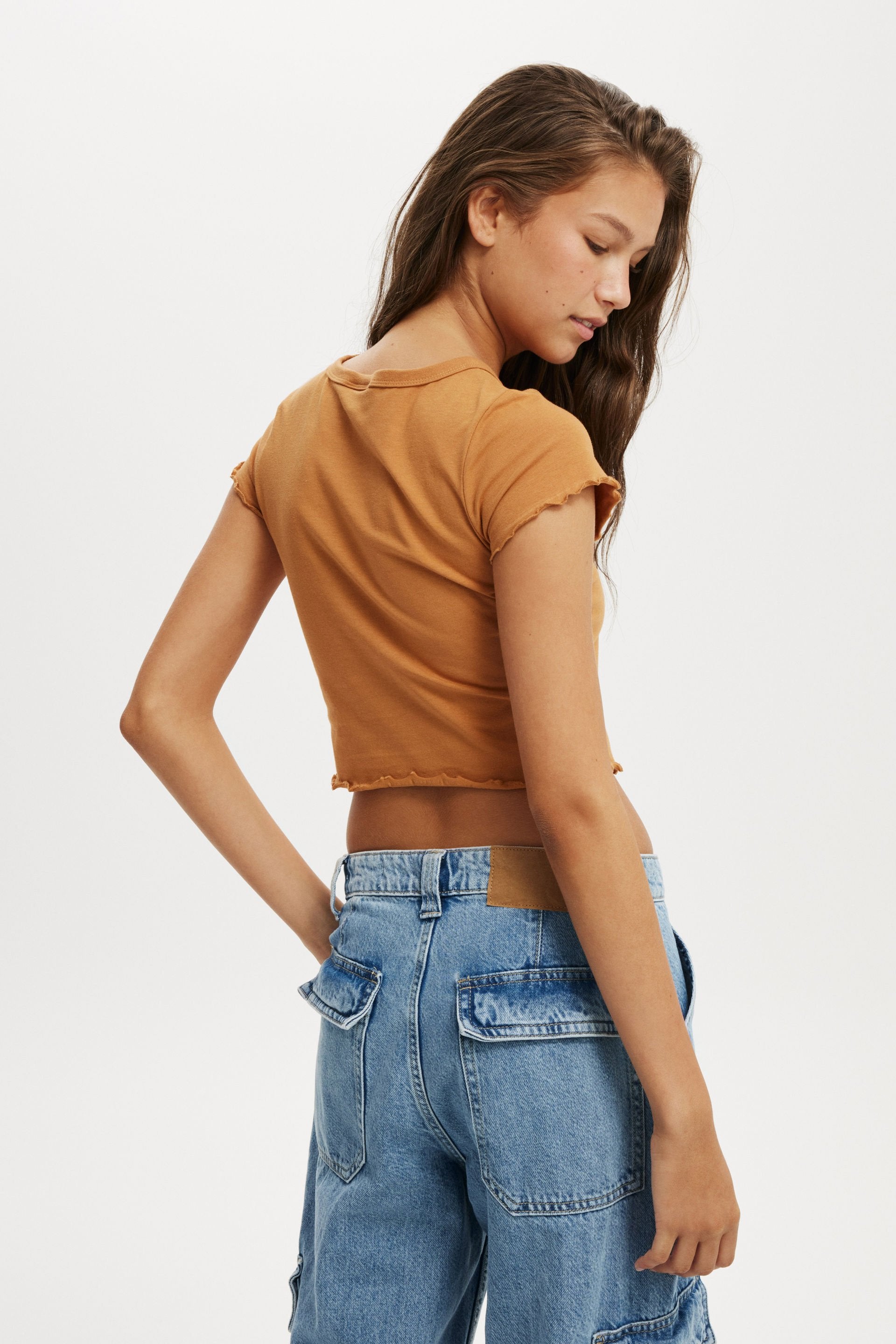 The crop t-shirt is a serious wardrobe essential. A cropped, close to the body fit, that screams comfort, it pairs back perfectly with your fave high waisted denim. Pick it up in a range of trending colours for easy everyday styling.