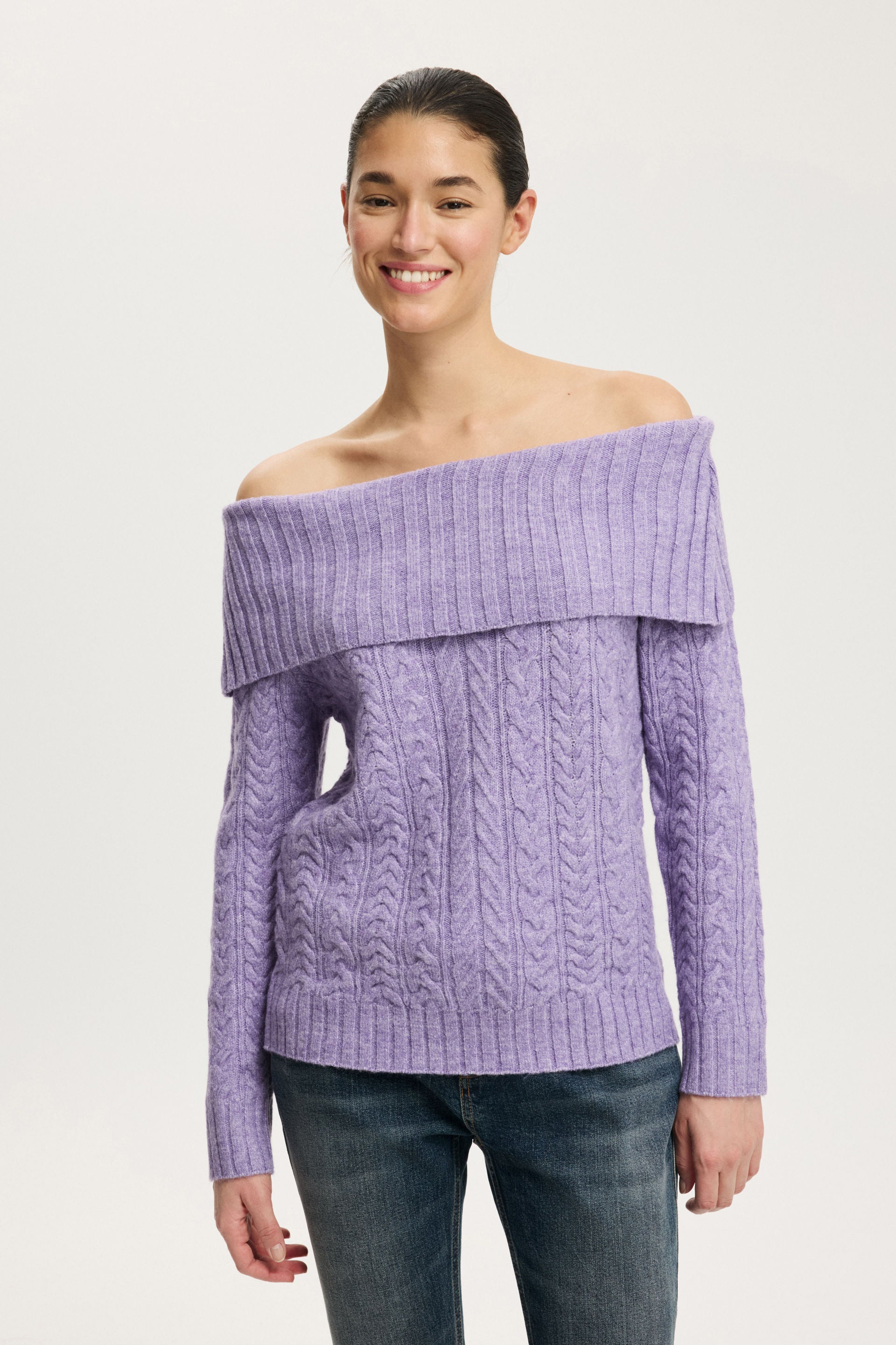 Fluffy Cable Off Shoulder Knit