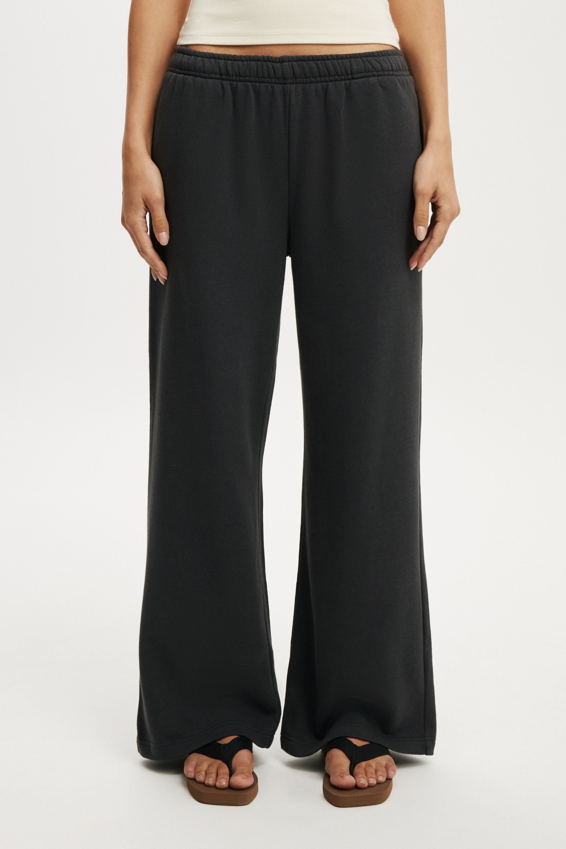 Designed with a wide leg and relaxed fit that pools just right. The elasticated waistband and internal drawstring keep it comfy, while side seam pockets add extra ease.